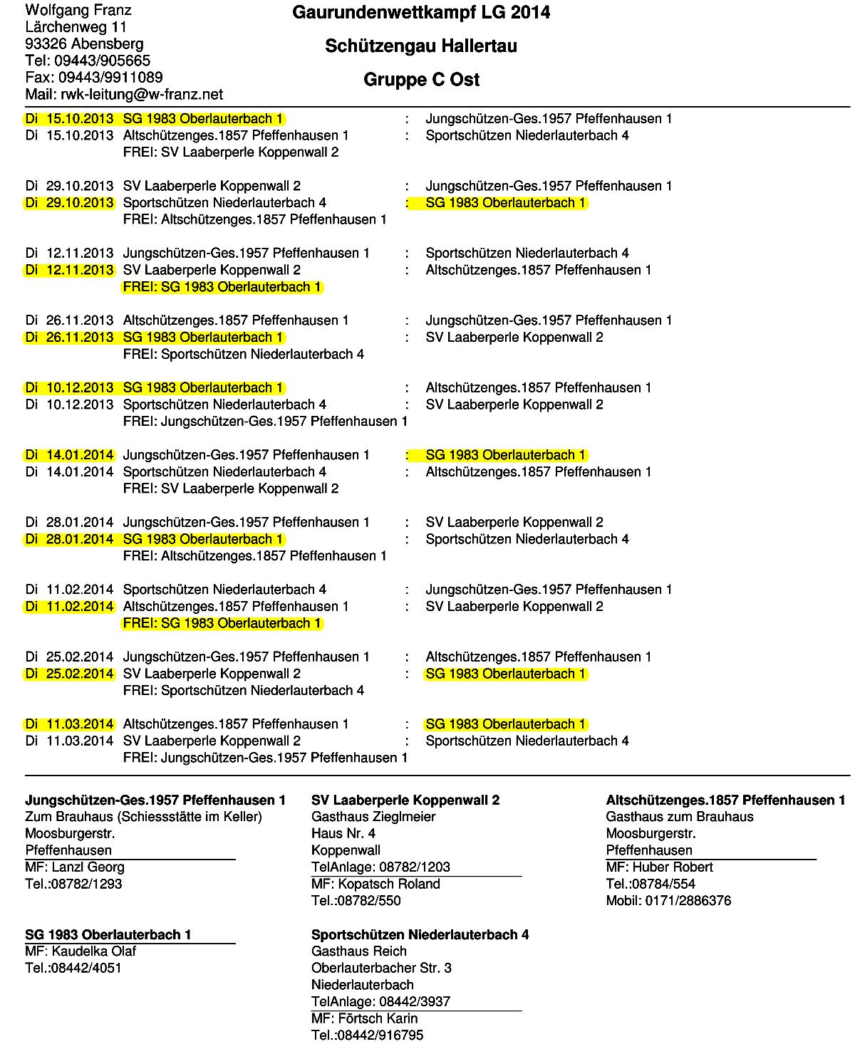 Abenden und das Saisonende bereits vor der Marktmeisterschaft (Oberlauterbach ist dieses Jahr
